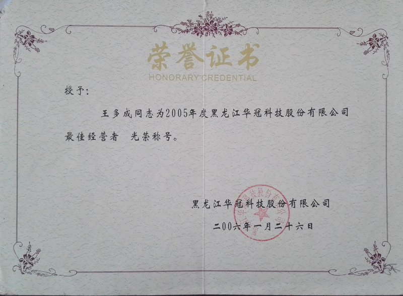 | 2005年度黑龍江花冠科技股份有限公司最佳經(jīng)營(yíng)者 | ||