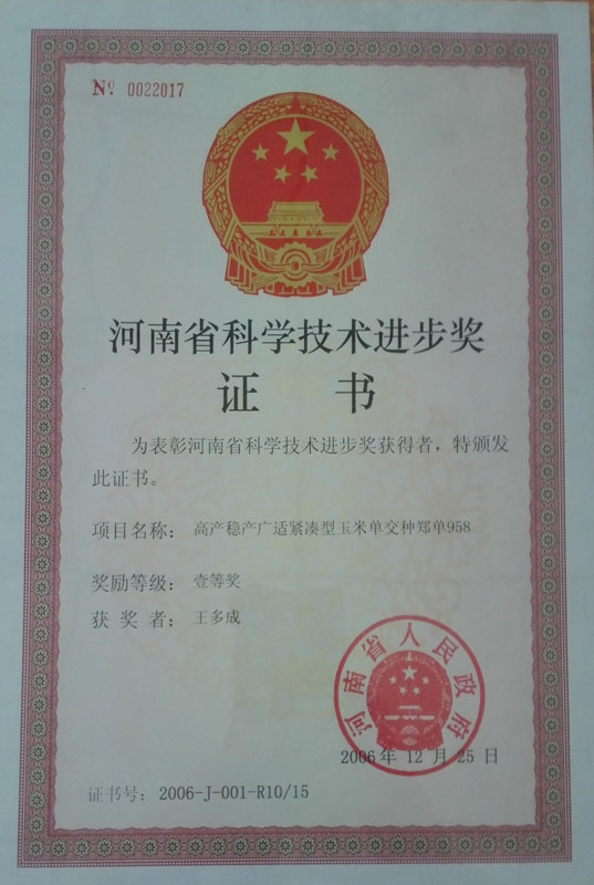 | 2006年榮獲河南省科學(xué)技術(shù)進(jìn)步獎(jiǎng) | ||